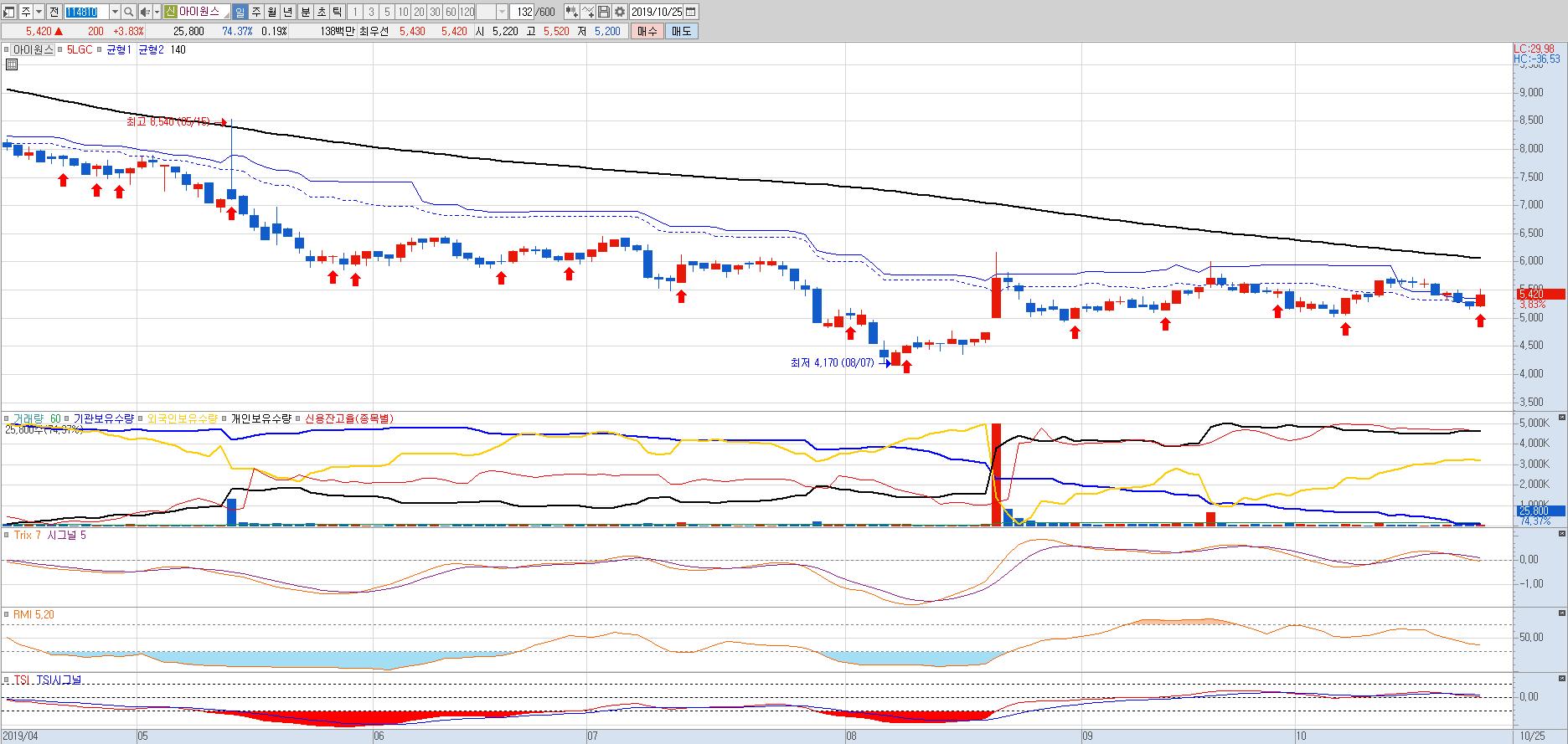 5,700원대 저항선을 돌파하면 5,900원과 6,400원의 저항대가 또 있다.