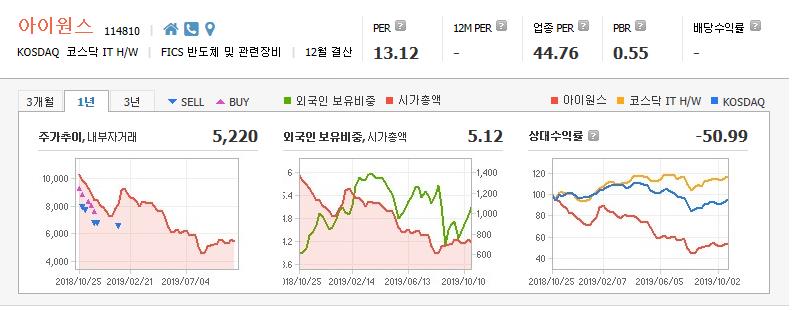 아이원스의 경우 주요 매출처가 일본 수출규제로 힘든 상황이지만 이 역시 결국 해결될 일이며 이미 최악은 면했다고 생각하고 있다.