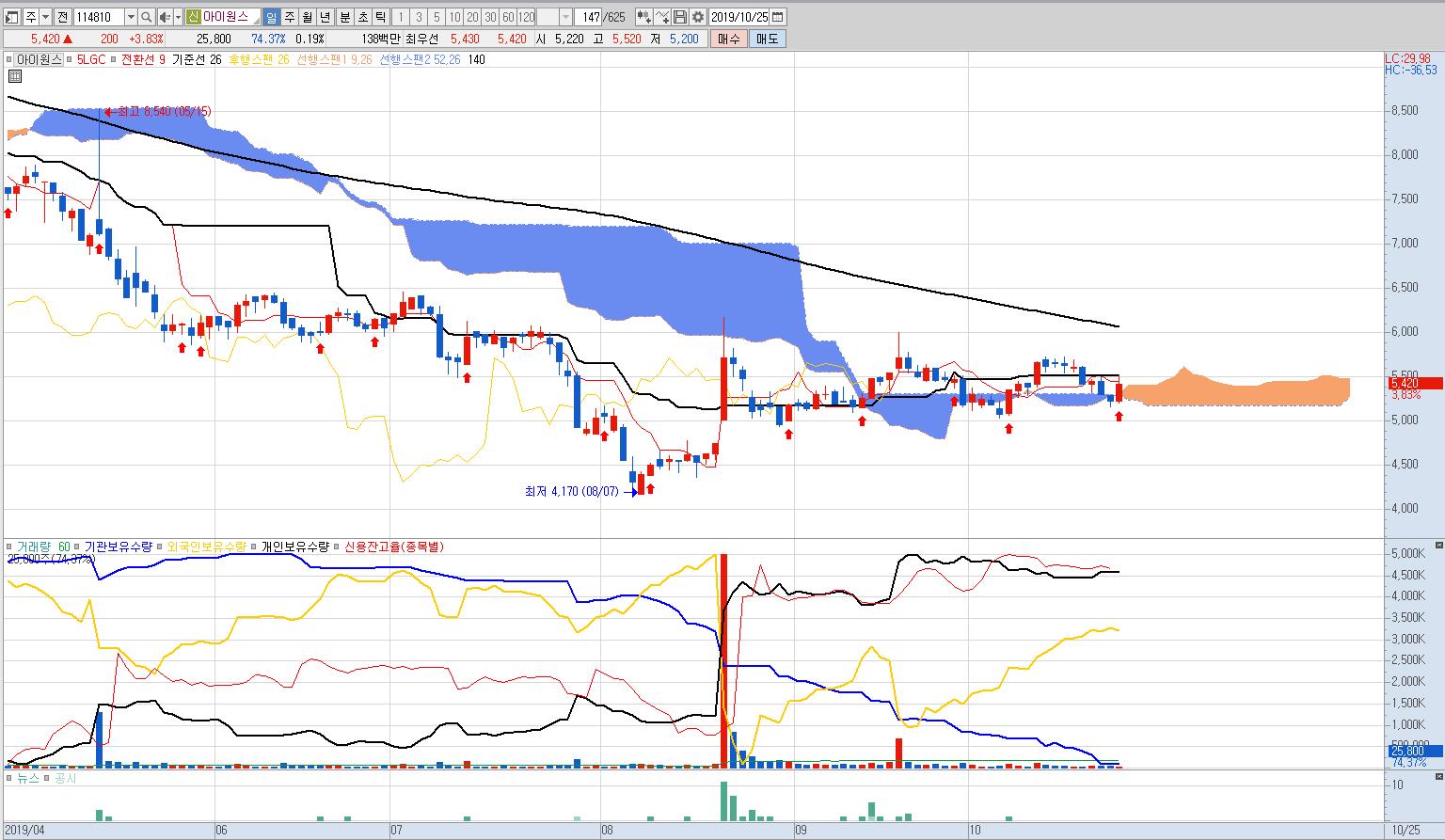 아이원스의 경우 주요 매출처가 일본 수출규제로 힘든 상황이지만 이 역시 결국 해결될 일이며 이미 최악은 면했다고 생각하고 있다.