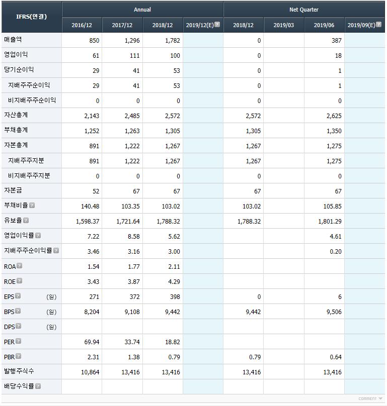 영업이익률만 보더라도 19년 2분기 5%를 채 넘지 못하고 있으며 ROE는 볼 것도 없다. (별도 기준 0.25)