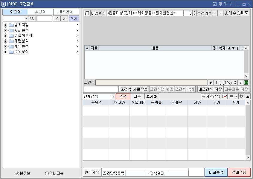 검색 종목 대상은 늘 그렇듯 자신의 스타일에 맞게 설정하고 시작한다.