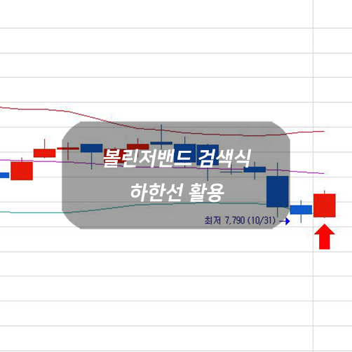 볼린저밴드 상한선 돌파 검색식에 이어 하한선 활용 검색식을 소개한다.