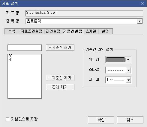 조건검색식에서 30을 기준으로 삼았으니 차트에서 볼 때도 30으로 설정해두자.