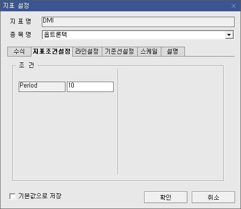 DMI의 경우도 스토캐스틱 슬로우와 같이 기간값을 10으로 설정한다.