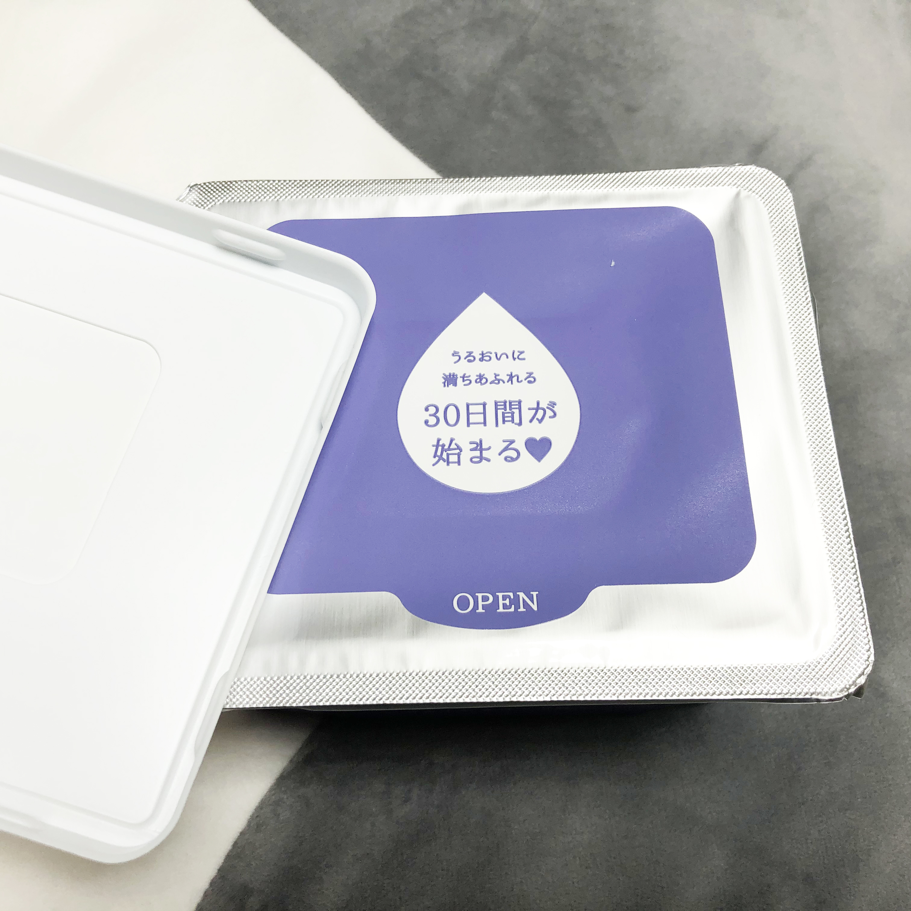 속포장을 덮고 있는 스티커를 완전히 제거한 후 겉뚜껑을 덮으면 1개월 사용 준비 끝!