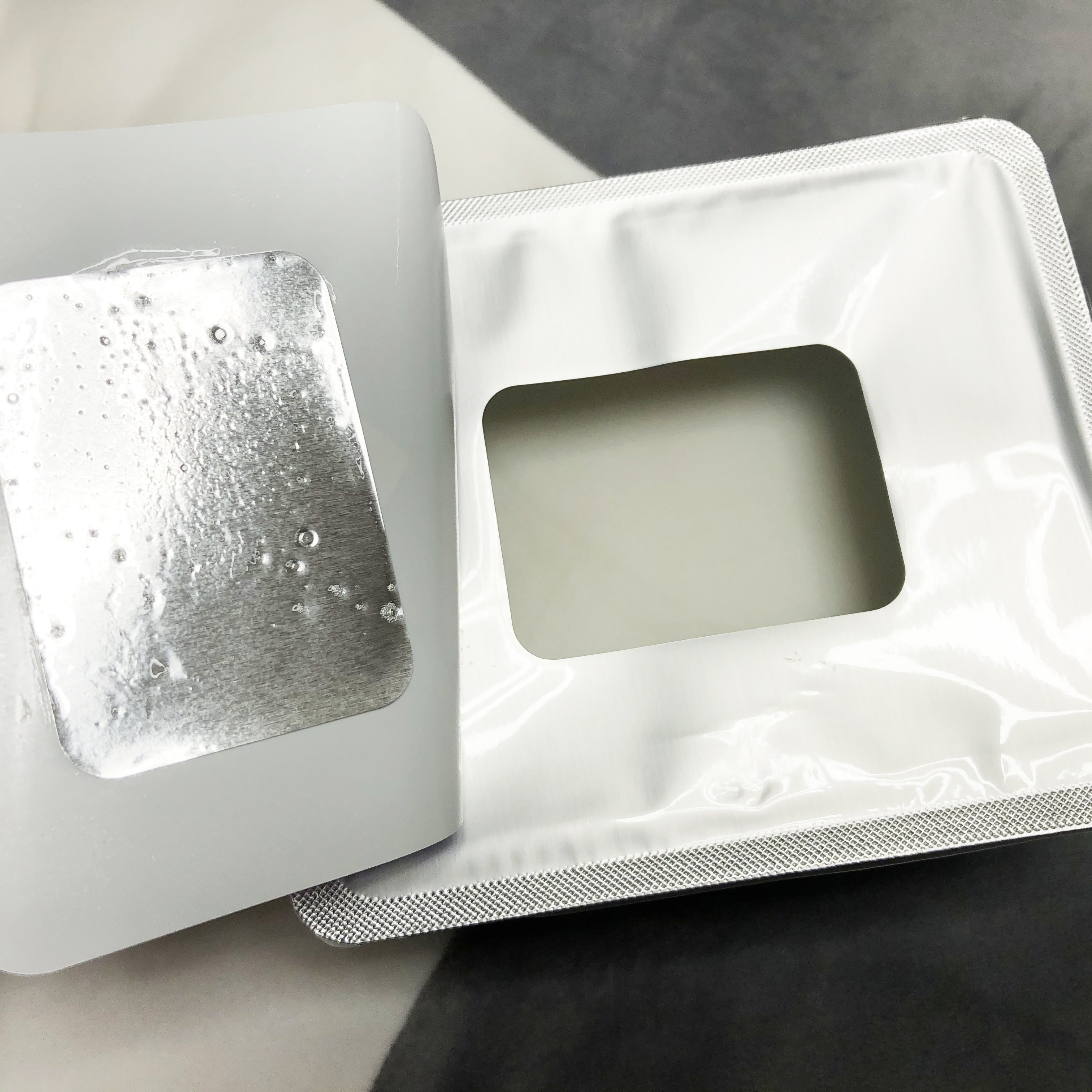 (스티커에도 에센스가 촉촉하게 묻어 있는 것을 확인할 수 있습니다. 여타 뽑아쓰는 마스크팩에 비해 에센스 양이 더 많다는 사실!)