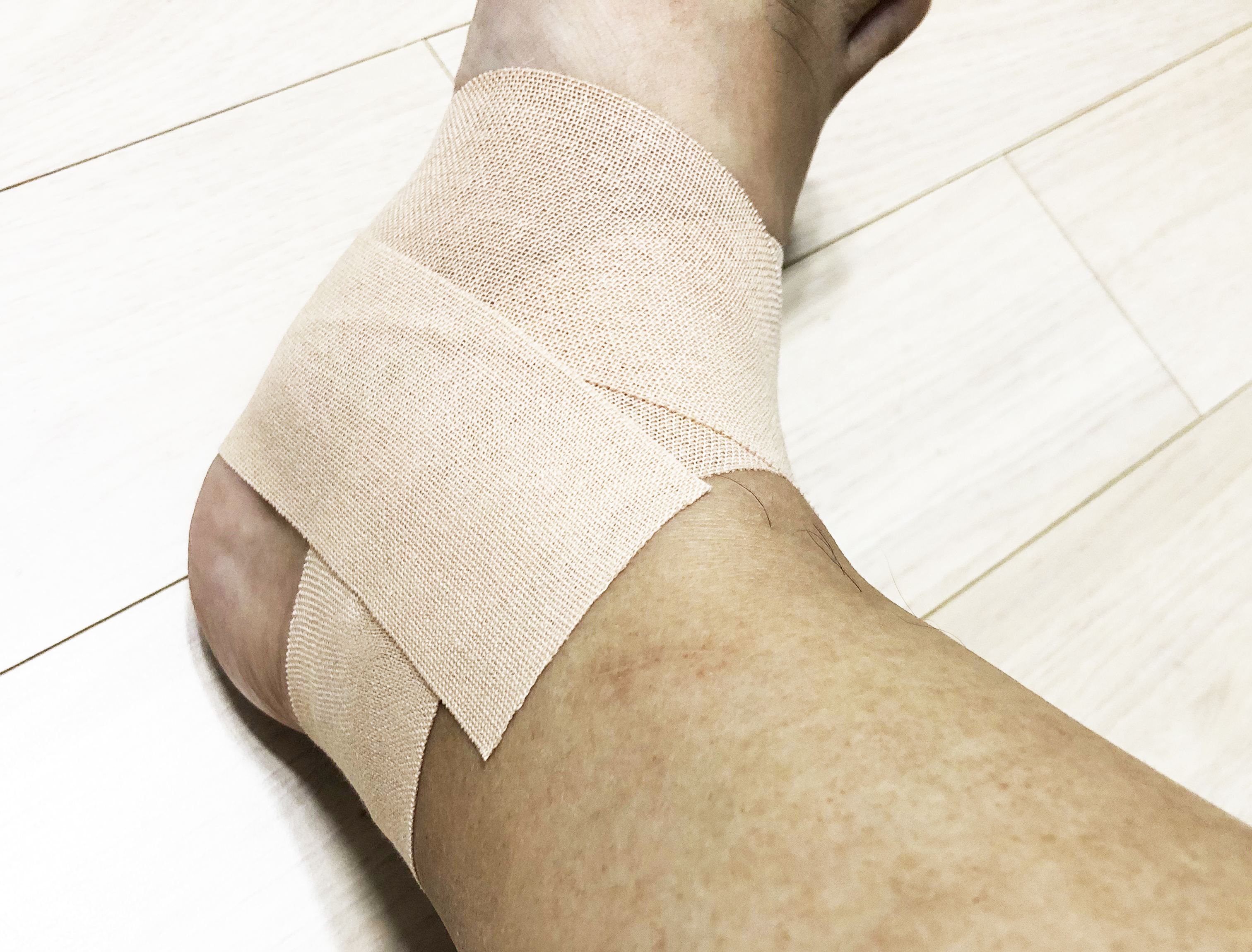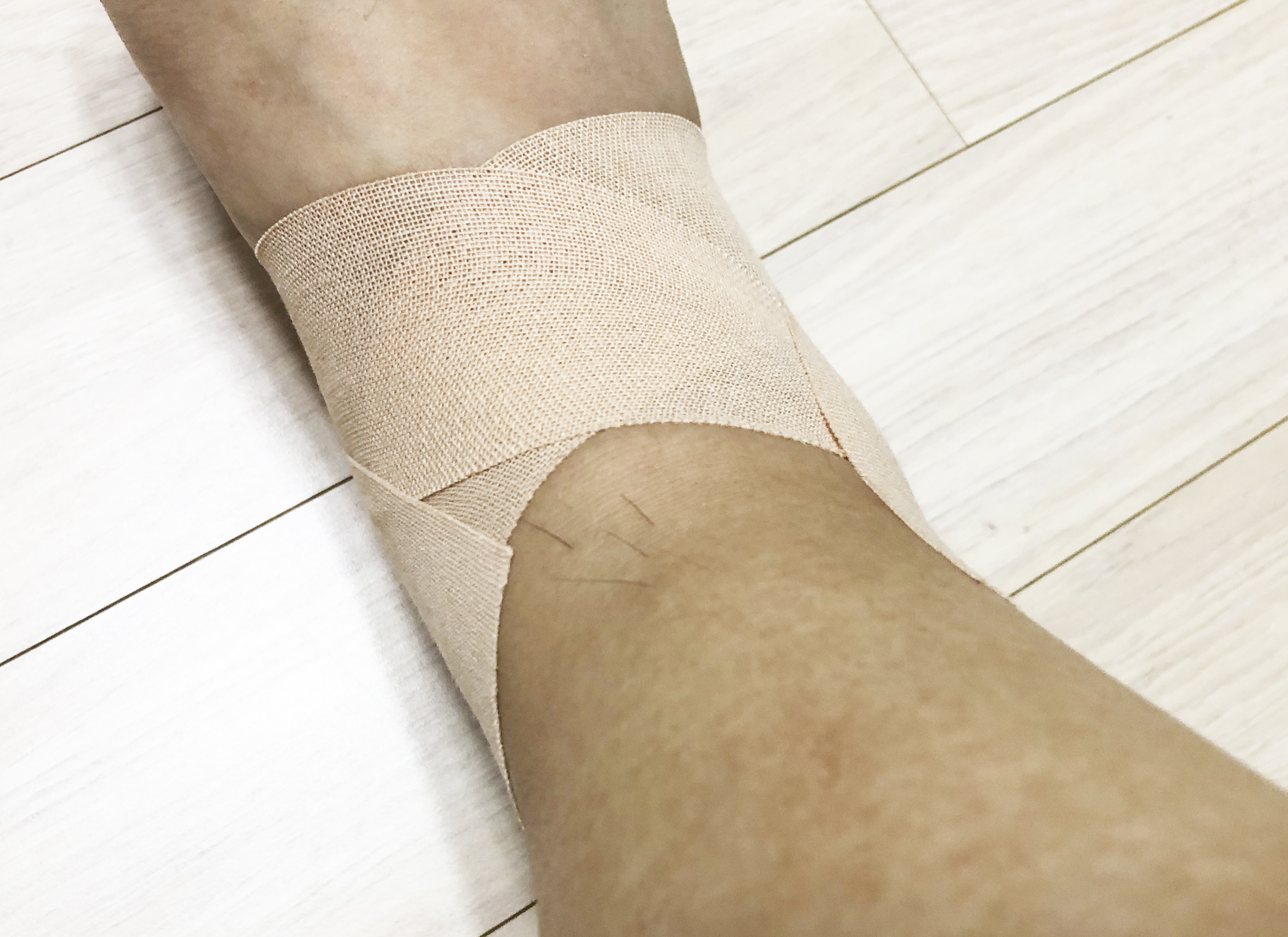 2. 발바닥을 중심으로 양쪽 복숭아뼈 부근으로 그대로 올려 붙임.