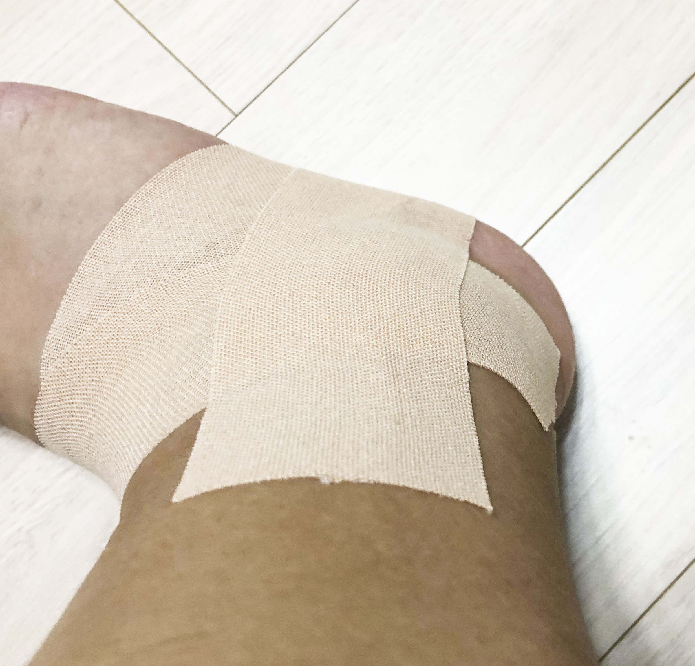 1. 발바닥을 중심으로 X자로 양쪽 복숭아뼈 부근에 붙임.