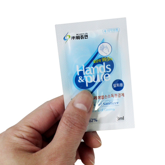 비츄인 일회용 손소독제는 3ml 용량의 제품입니다.