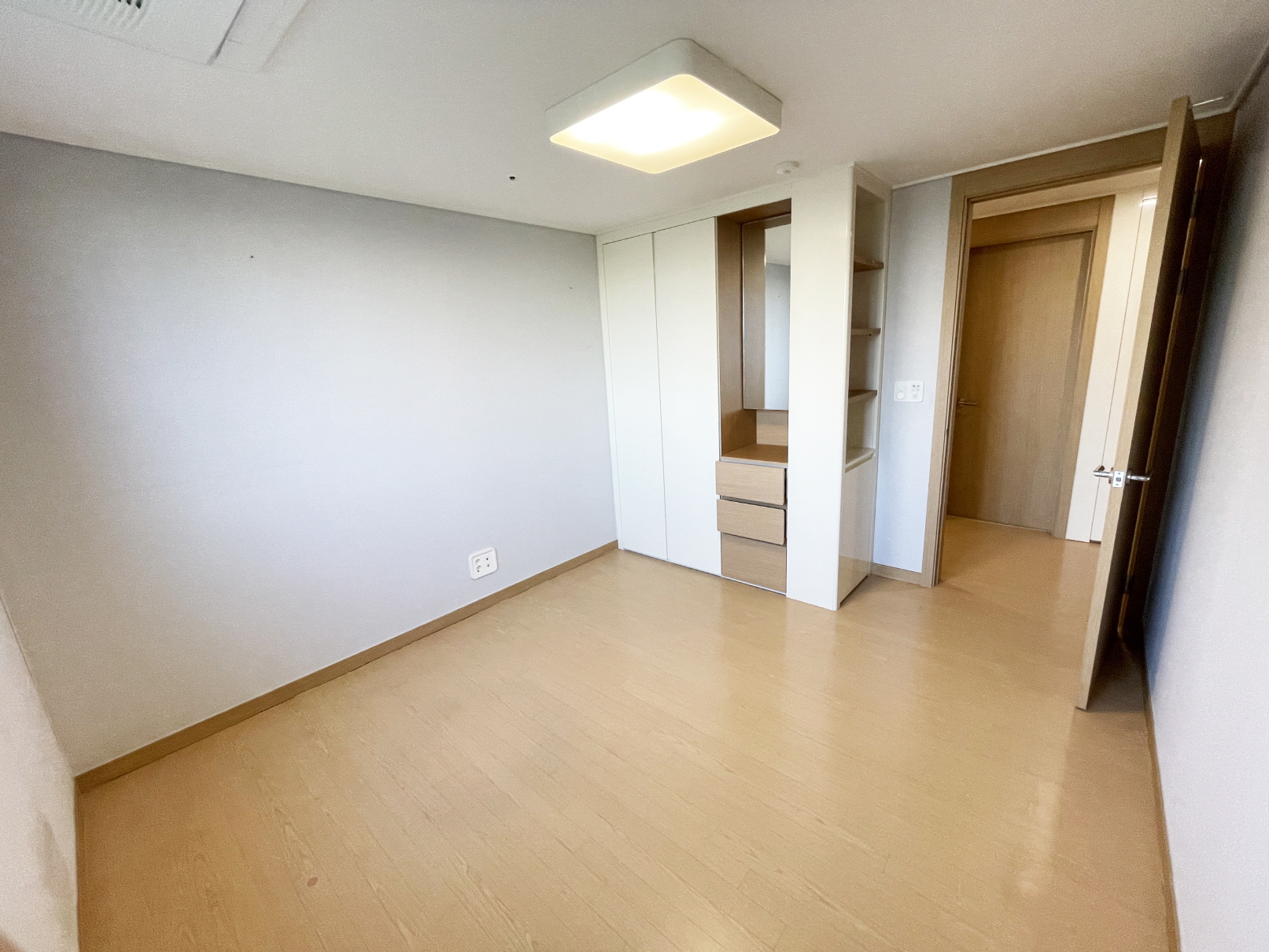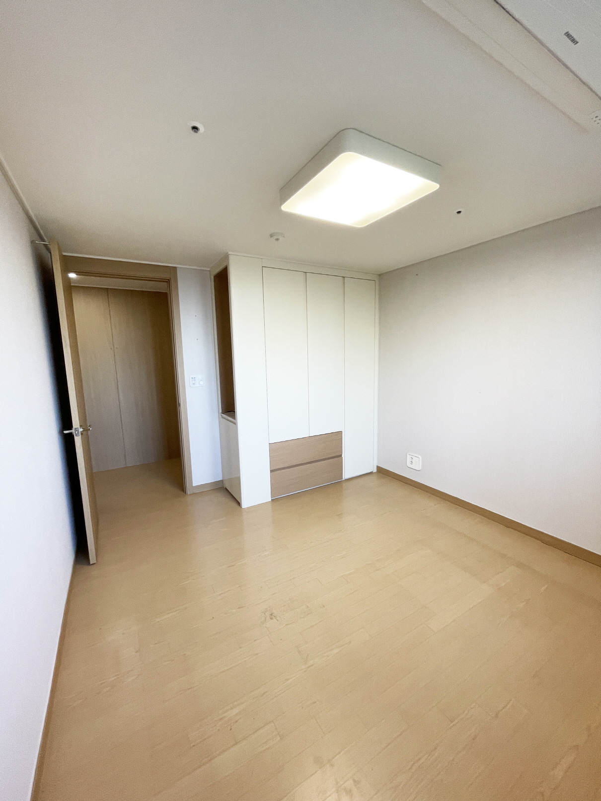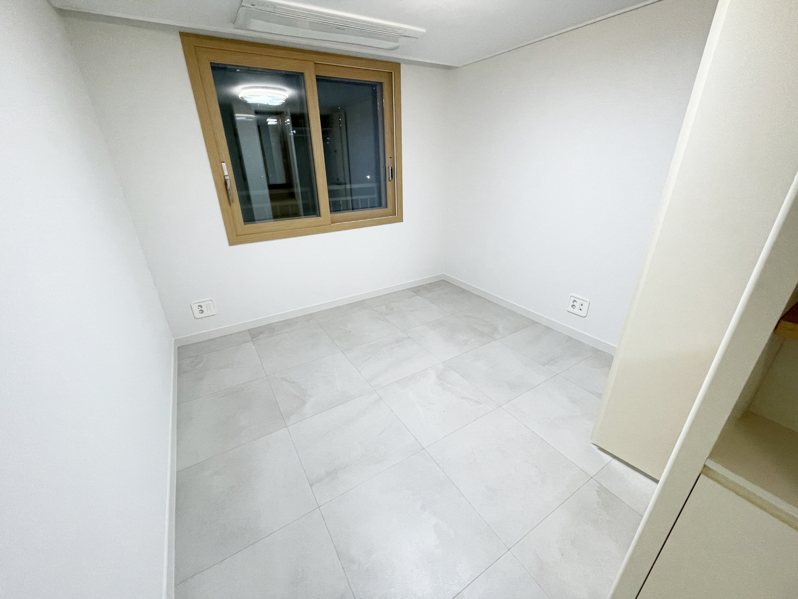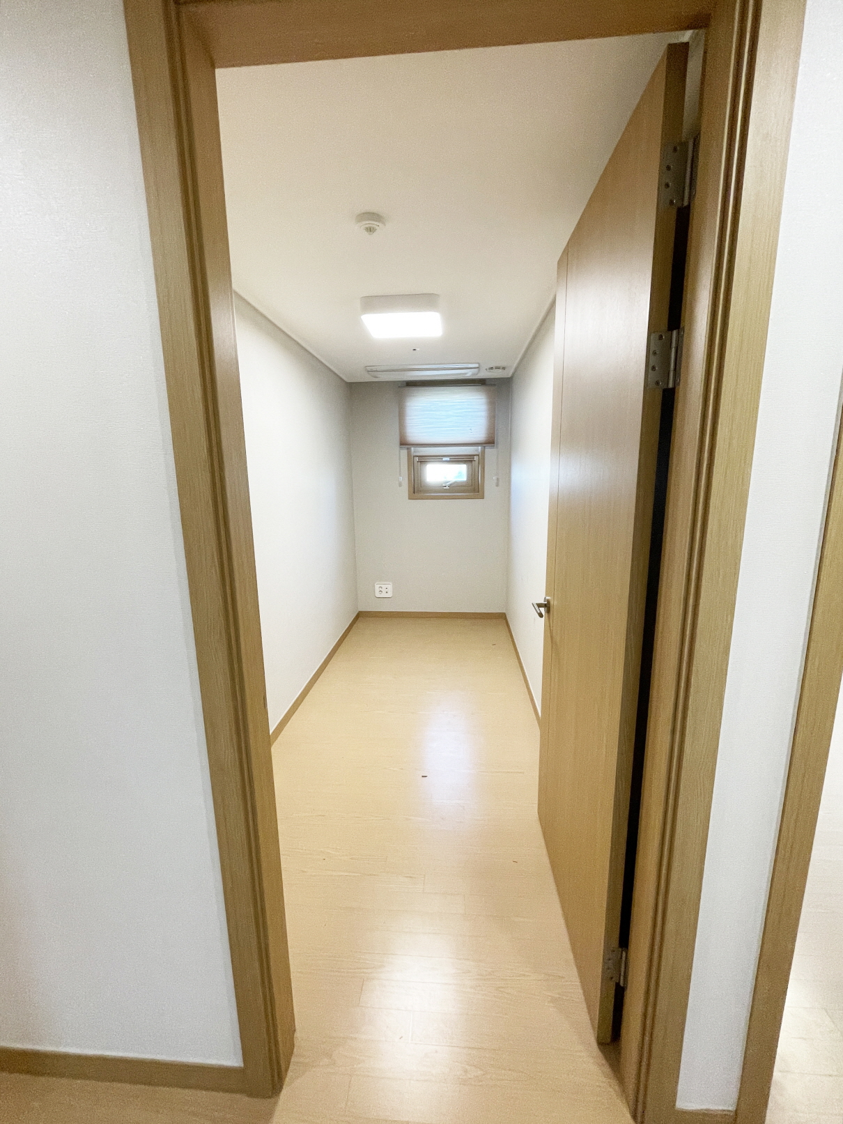 침실 역시 도배와 장판 시공만 하고 발코니측 도어와 프레임은 커튼을 달 예정으로 존치시켰습니다. (비용 절약)