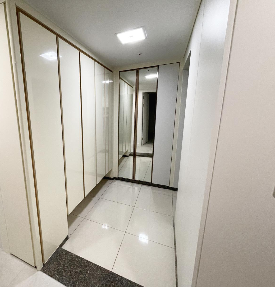 현관을 들어서면 복도를 따라 방 3개와 공동 욕실이 있고 거실을 지나면 침실과 발코니, 드레스룸이 있습니다.