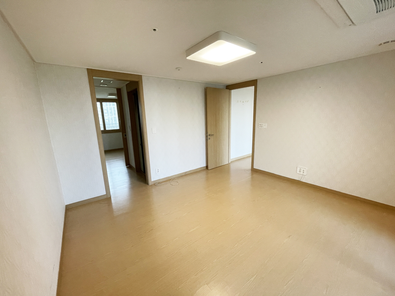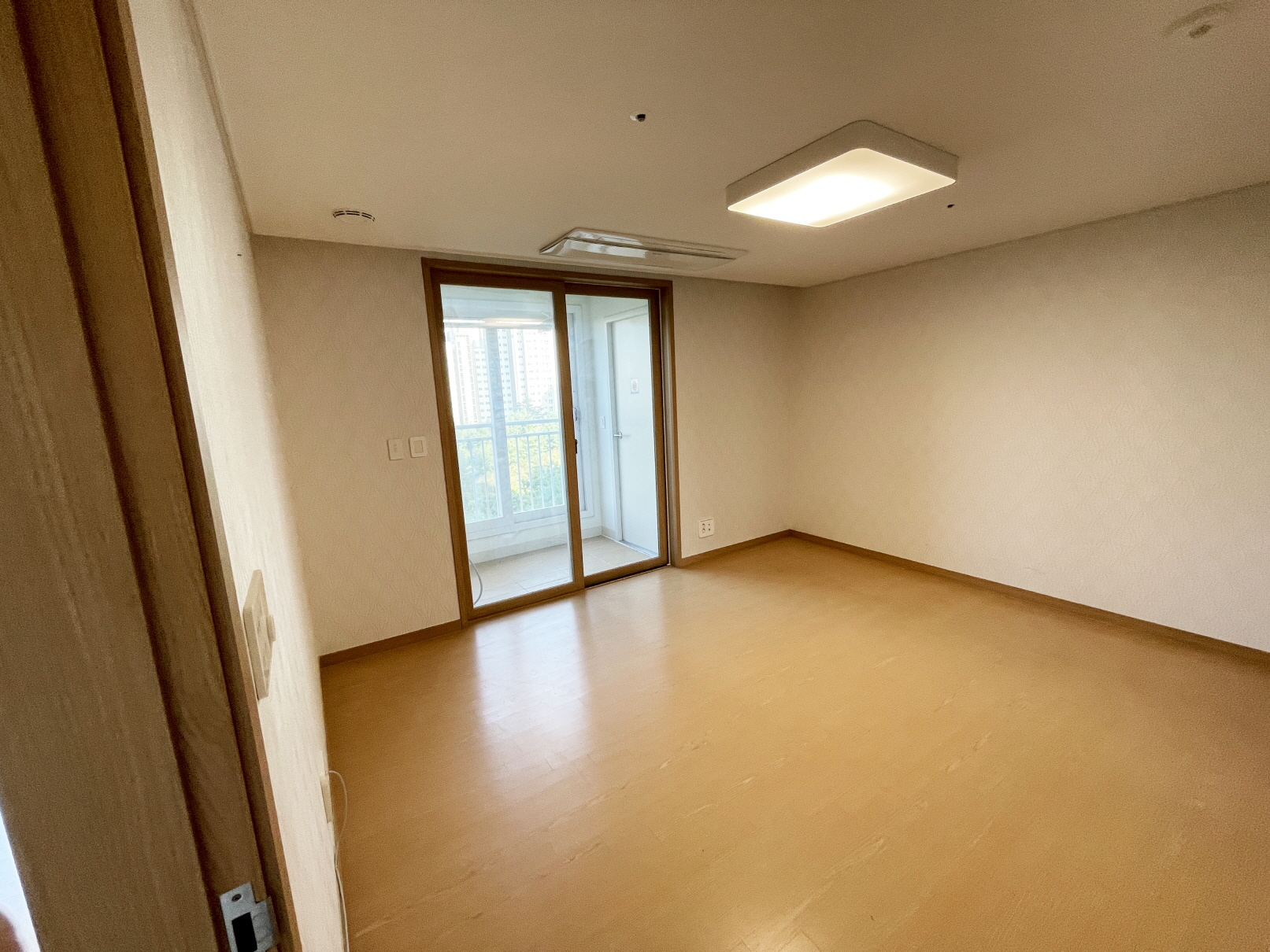 침실 역시 도배와 장판 시공만 하고 발코니측 도어와 프레임은 커튼을 달 예정으로 존치시켰습니다. (비용 절약)