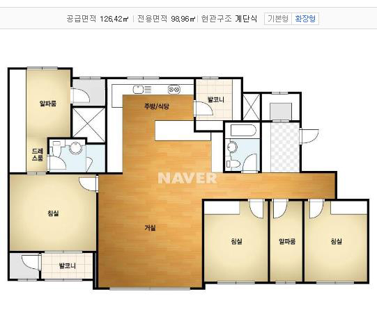대상 아파트는 전용면적 98제곱미터로 흔히 38평이라 합니다.