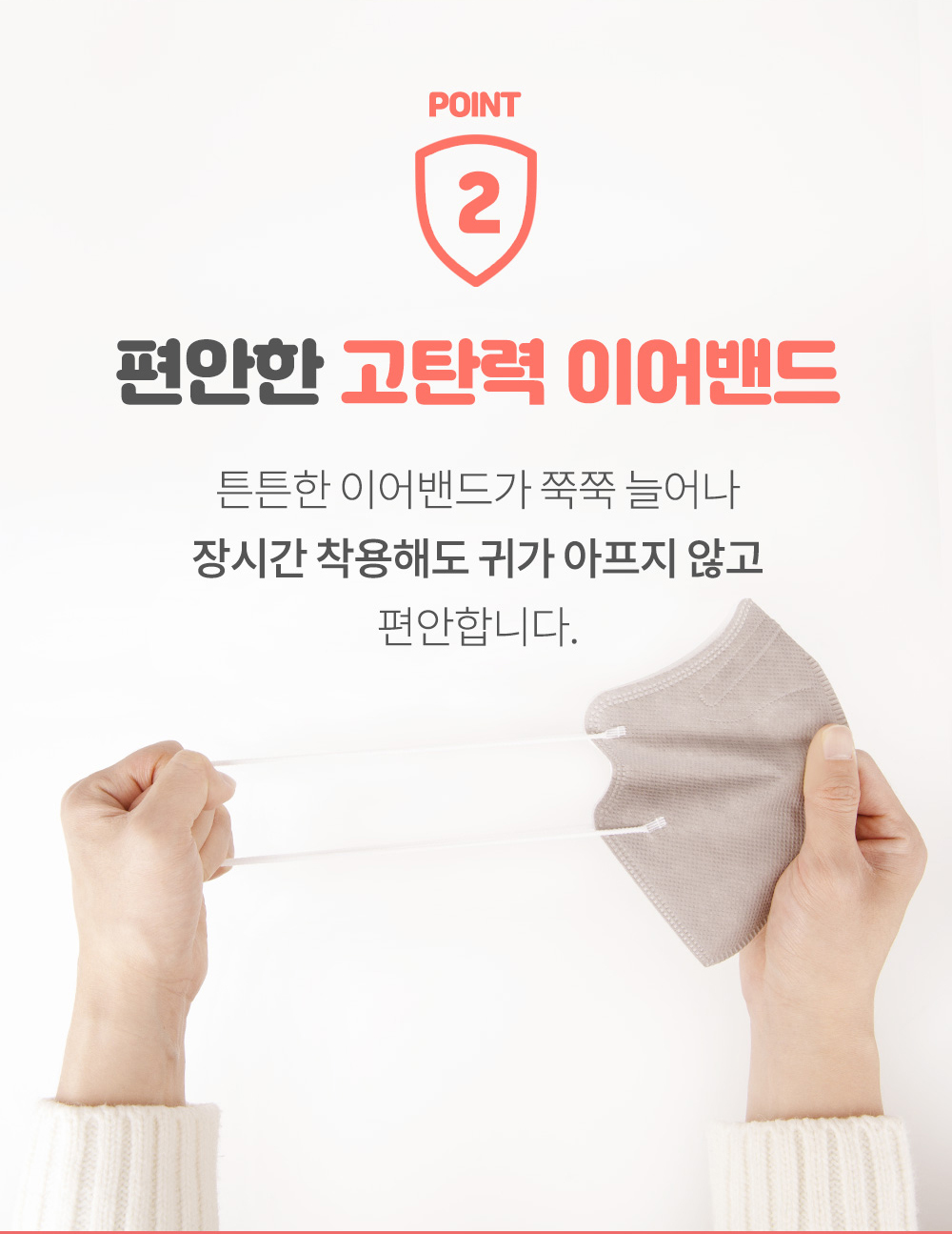 고탄력 이어밴드로 귀가 아프지 않습니다.