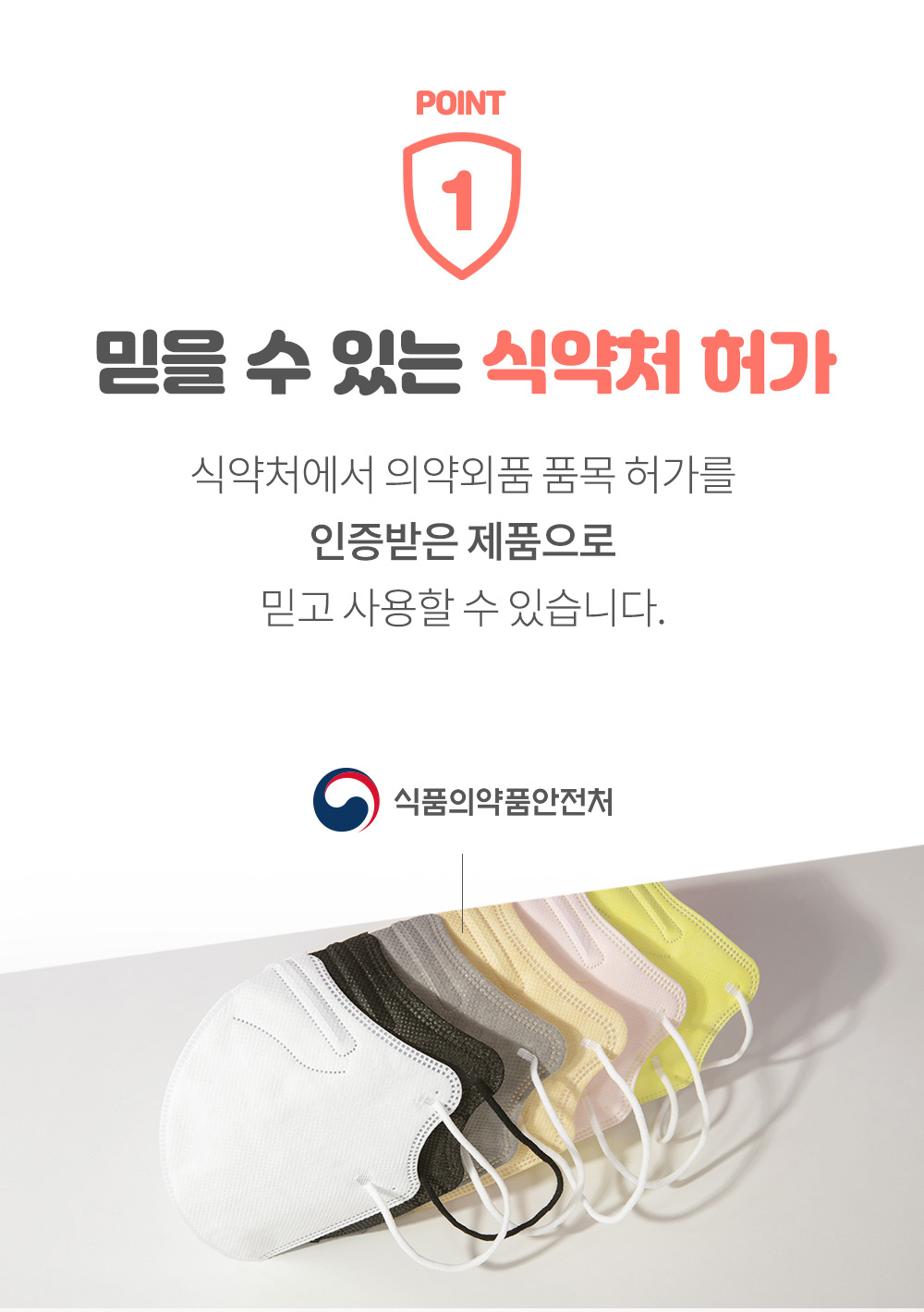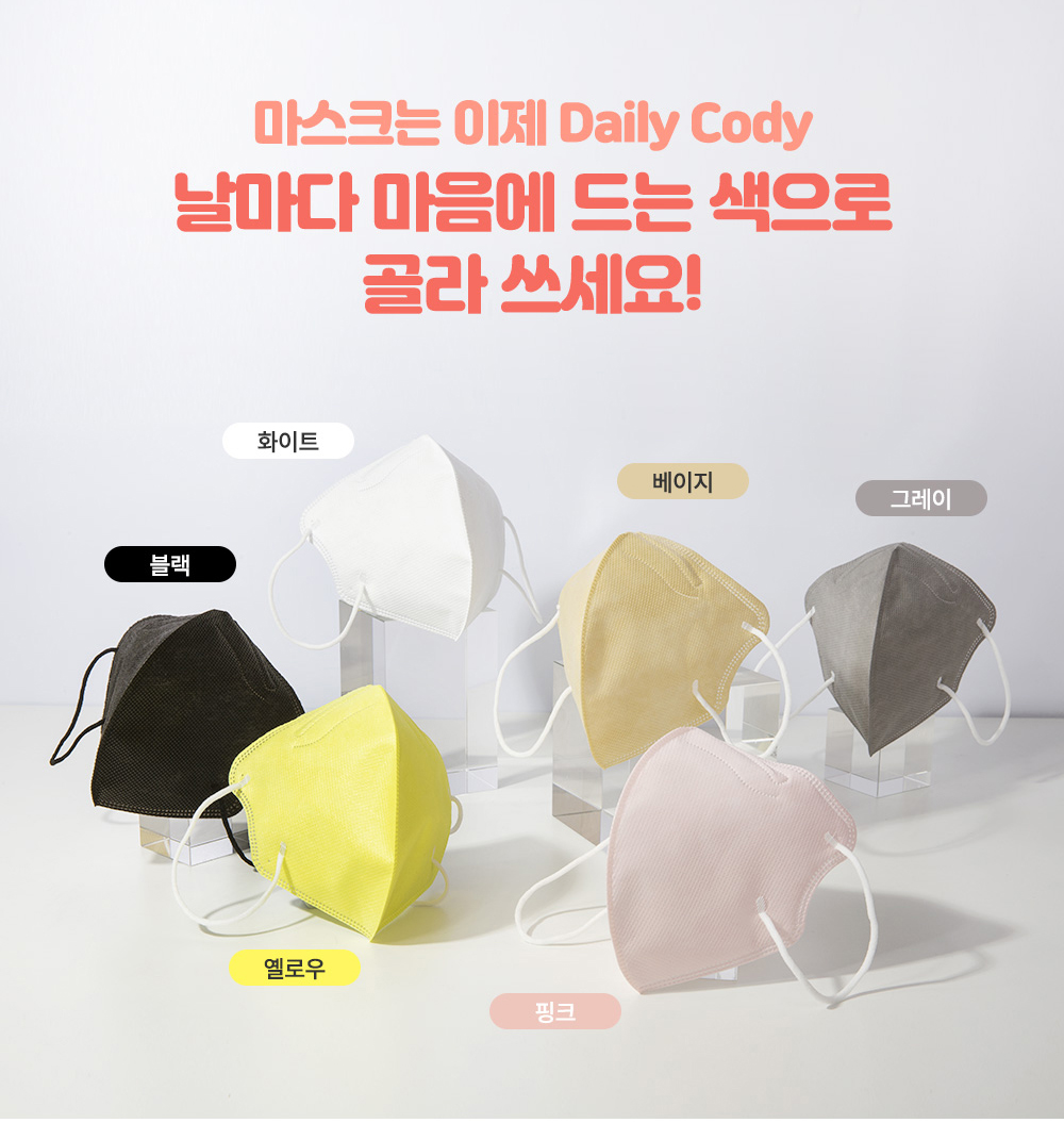 다양한 컬러, 믿을 수 있는 국내산, KF94 식약처 인증, 숨쉬기 편한 새부리형 타입, 무엇보다도 놀라운 개당 가격 200원.