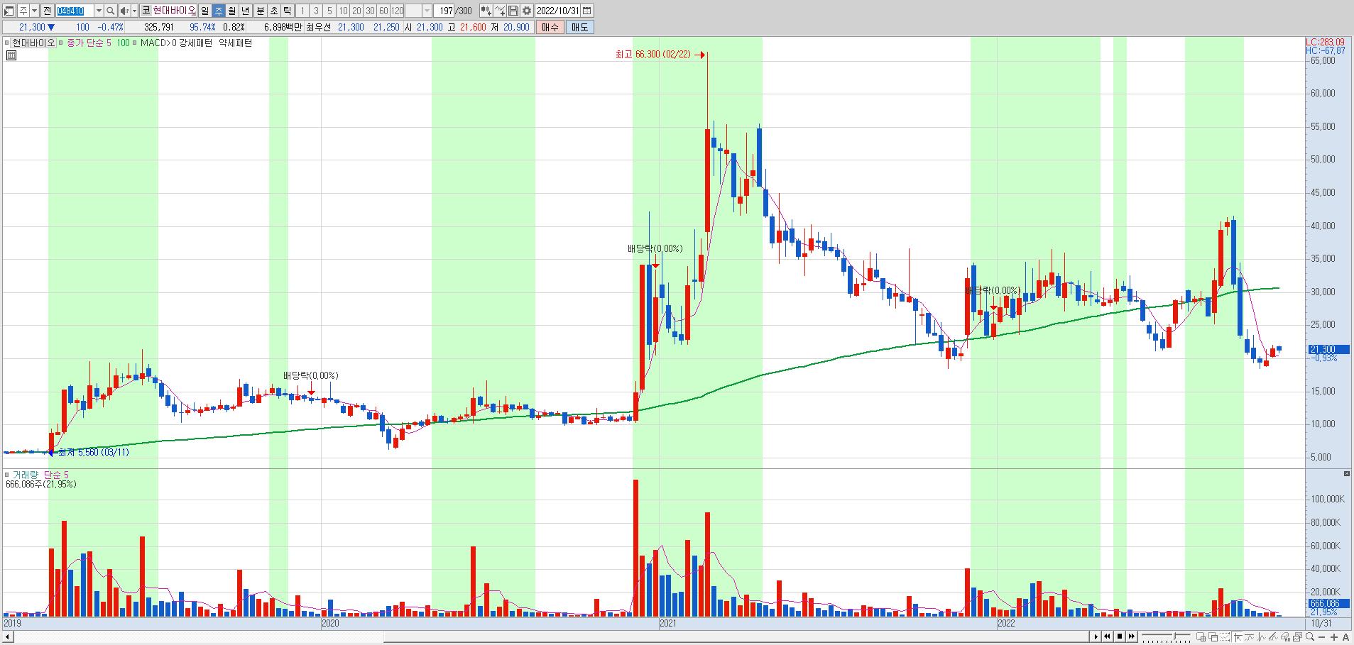 현대바이오의 현재 주가 차트를 보면 때가 거의 다가왔음을 느낀다. (차트로 특히 잘 속이는 종목이 현대바이오라는 점은 함정...)