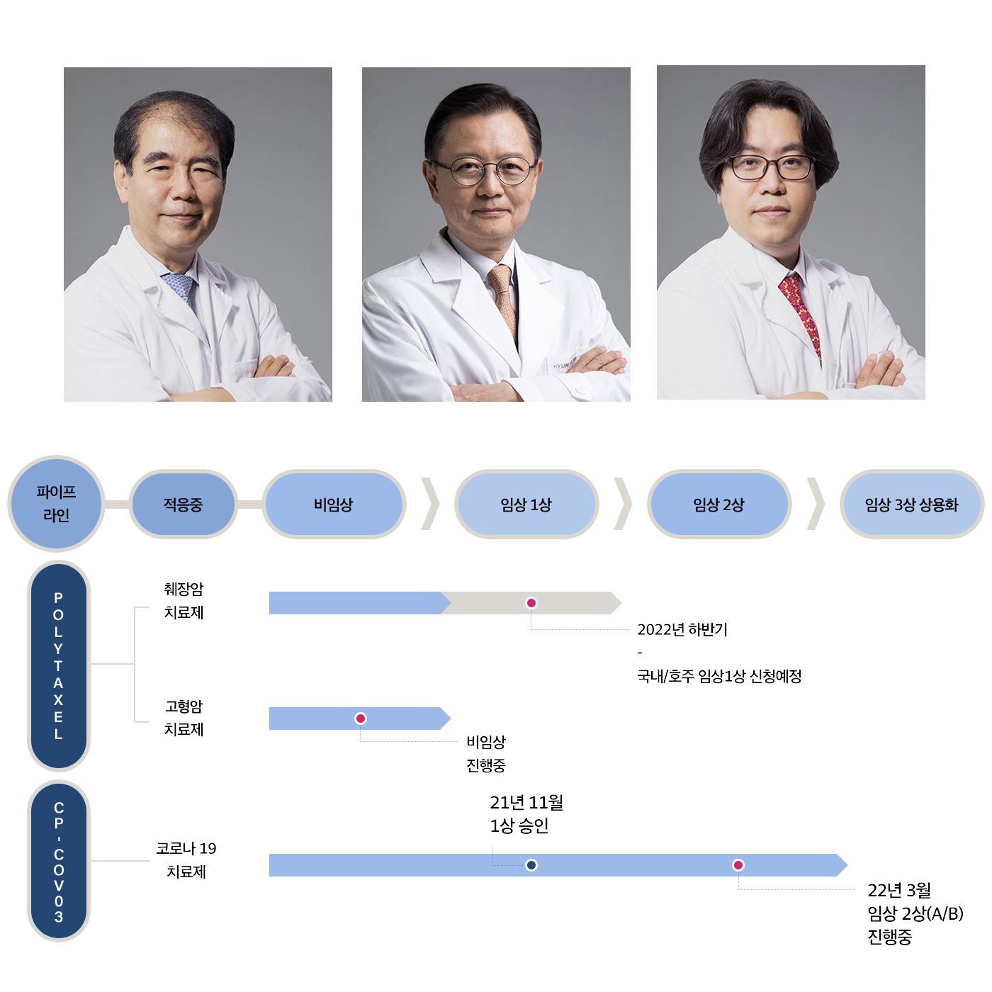 현대바이오는 범용 항바이러스제 말고도 폴리탁셀이라는 무기도 있다. 현대바이오 홈페이지에 기재된 파이프라인 그래픽을 보자.