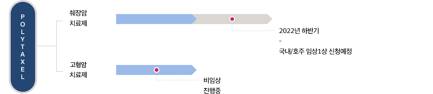 현대바이오는 범용 항바이러스제 말고도 폴리탁셀이라는 무기도 있다. 현대바이오 홈페이지에 기재된 파이프라인 그래픽을 보자.