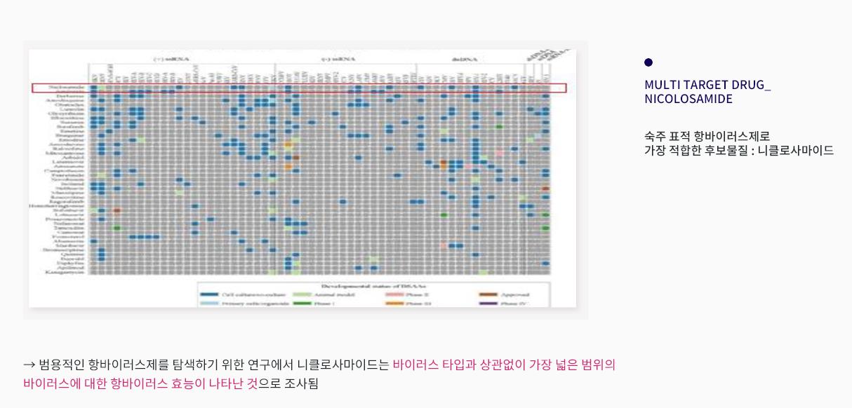 이같은 난제를 풀지 못해 니클로사마이드는 여지껏 항바이러스제로 태어날 수 없었다.