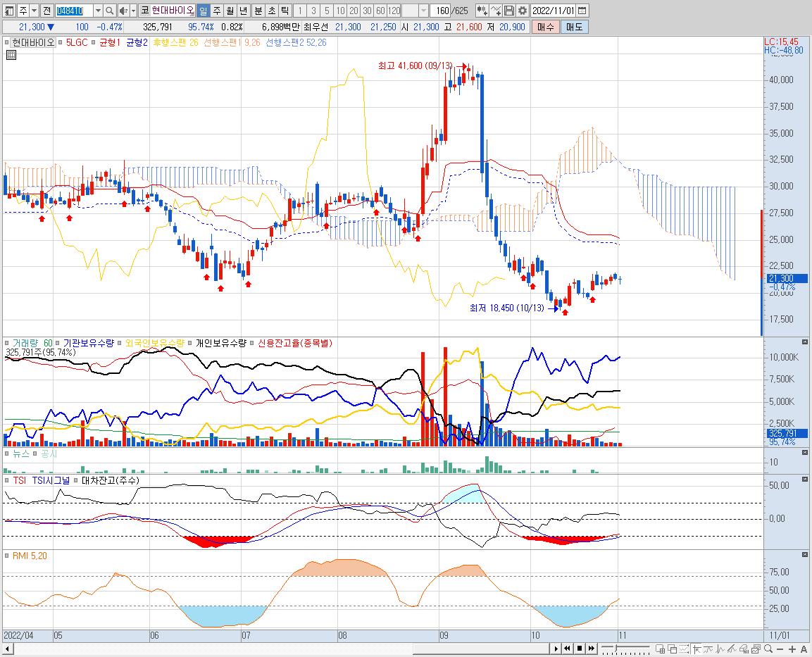 현대바이오의 현재 주가 차트를 보면 때가 거의 다가왔음을 느낀다. (차트로 특히 잘 속이는 종목이 현대바이오라는 점은 함정...)