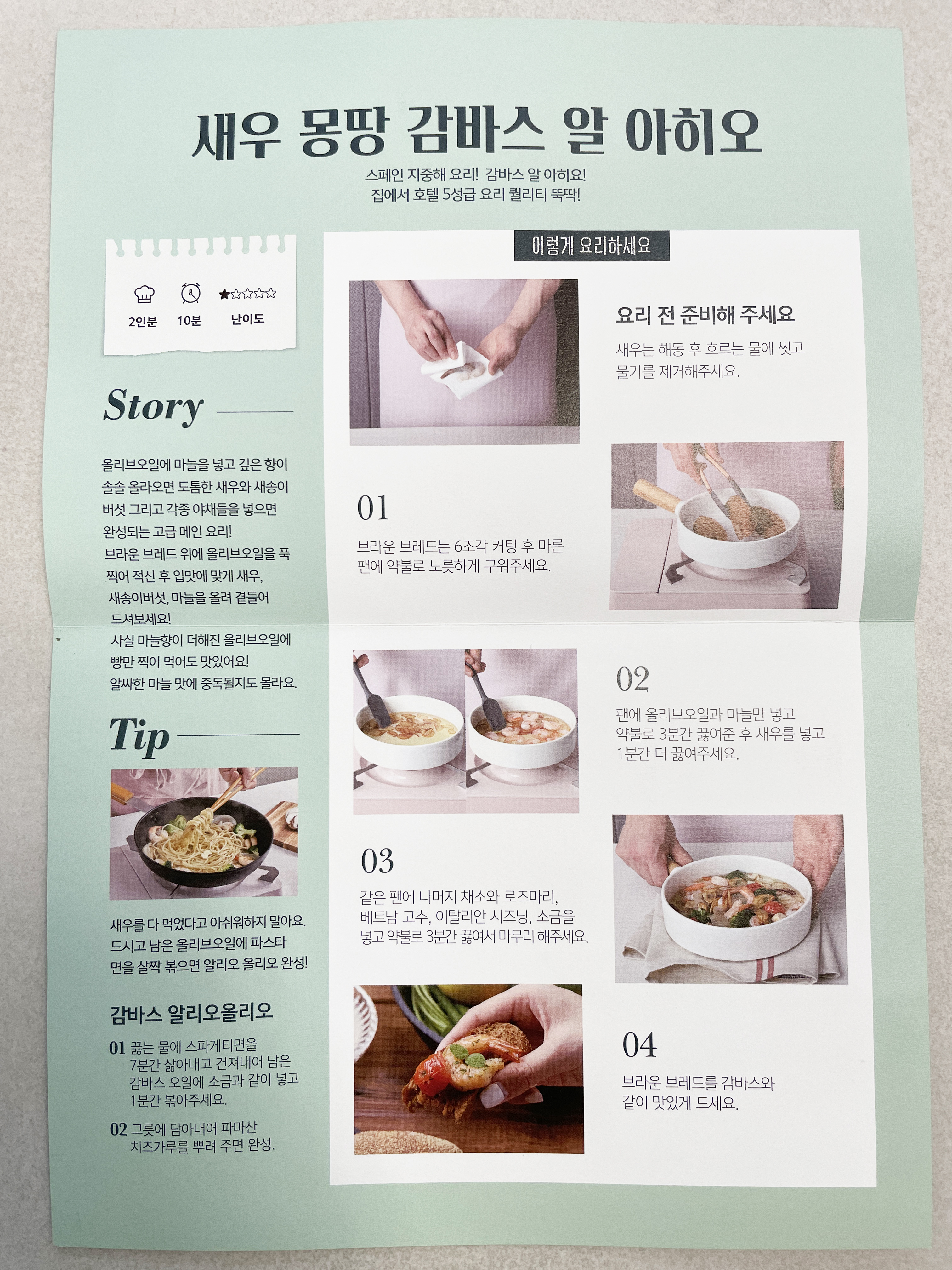 이렇게 담짜몰에서 구매한 감바스 알아히요 밀키트를 다루어 보았는데요.