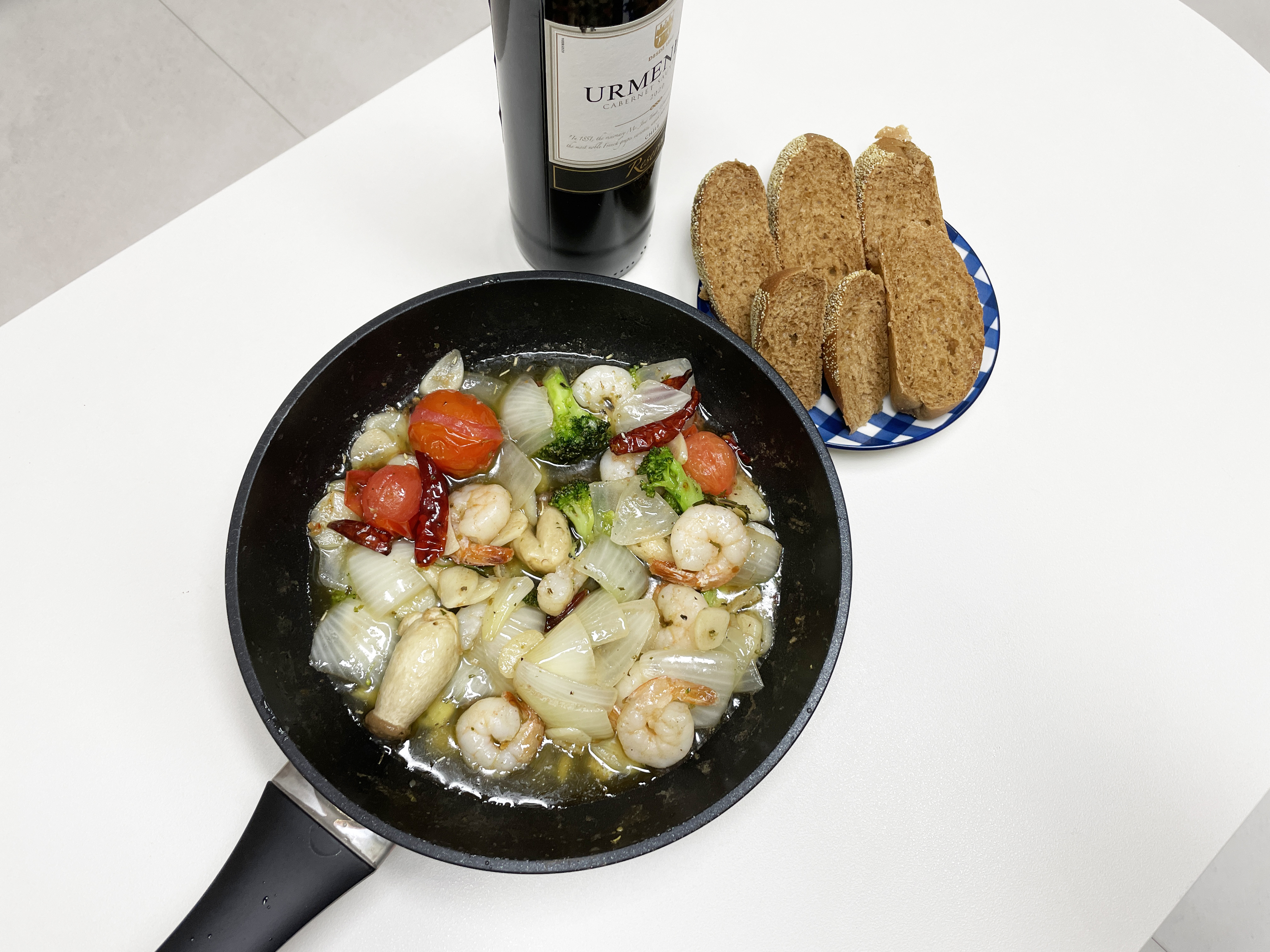 새우 물기 제거해주고, 브레드 잘라서 구워주고, 올리브오일에 마늘 넣고 새우를 끓인 후 시즈닝·소금 넣고 채소 등 때려 넣고 끓여줍니다.