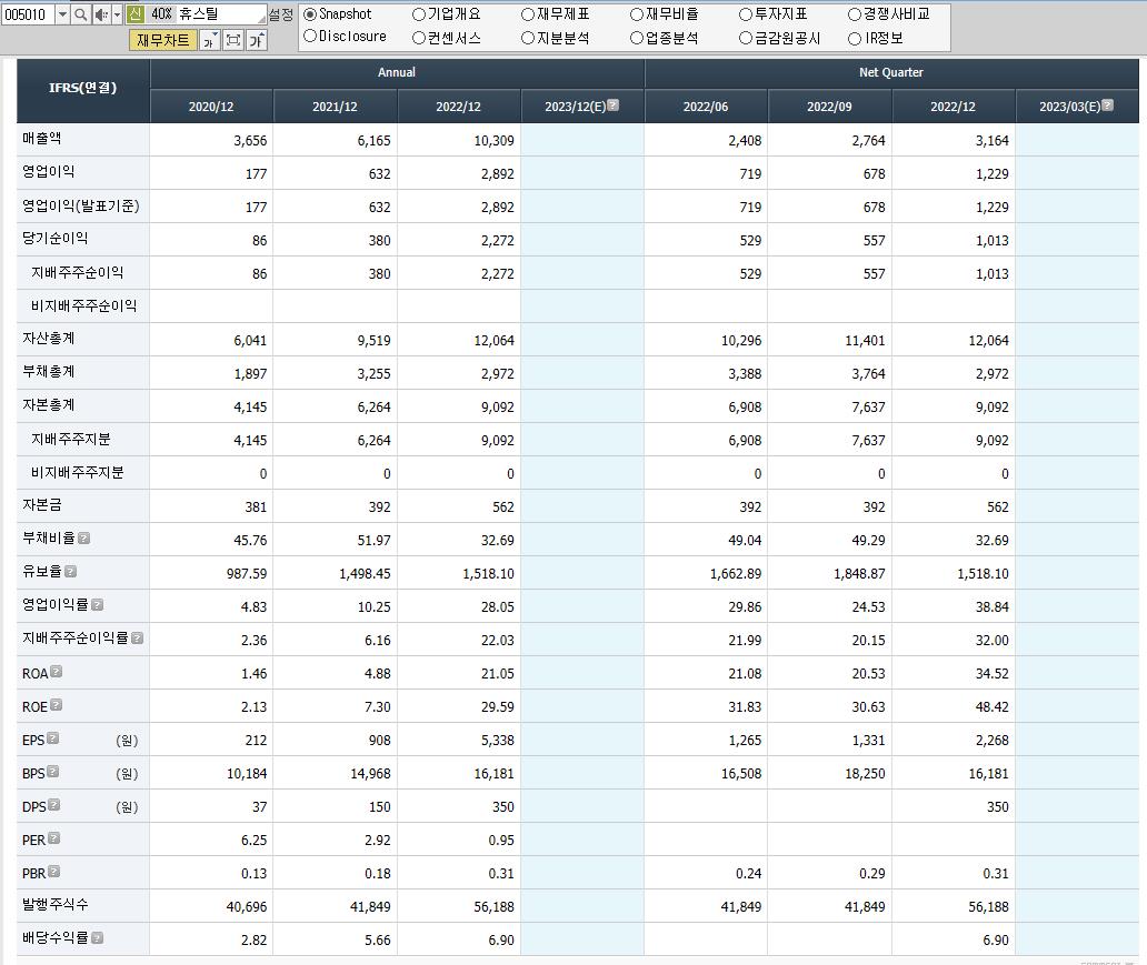 유보율이 인상적이지만 다른 지표들의 분기별 편차가 심한편. 무슨 일이 있었구나.