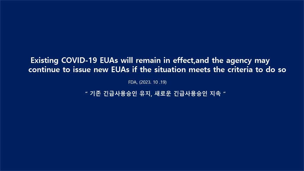 FDA는 지금까지와 마찬가지로 기존 긴급사용승인을 유지하고 있으며 새로운 긴급사용승인도 지속하고 있습니다.