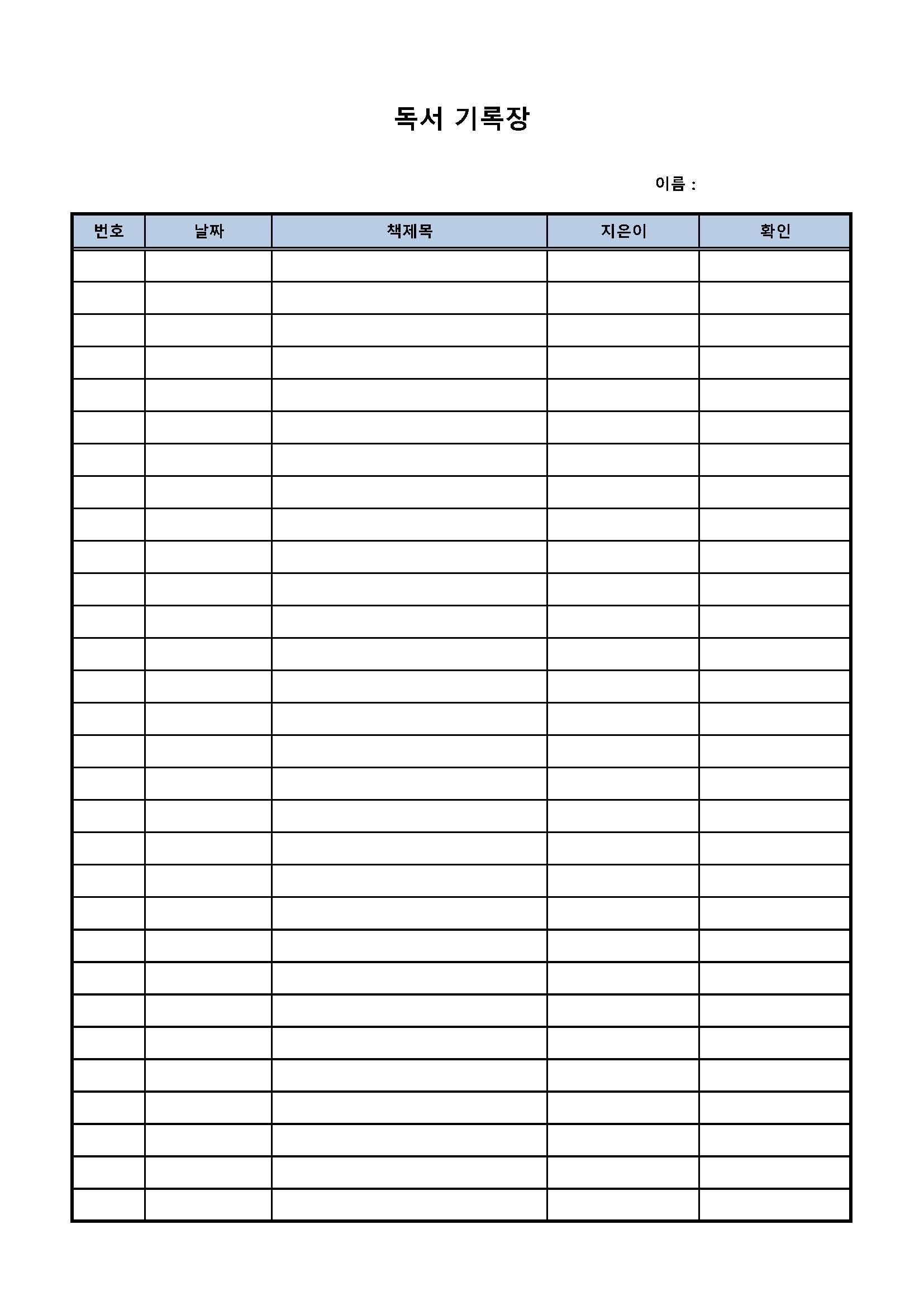 독서통장 디자인이 재미있긴 하지만 한장으로 출력할 수 있는 형태가 편할 것 같아 통장 디자인 대신 기록지 타입으로 합니다.