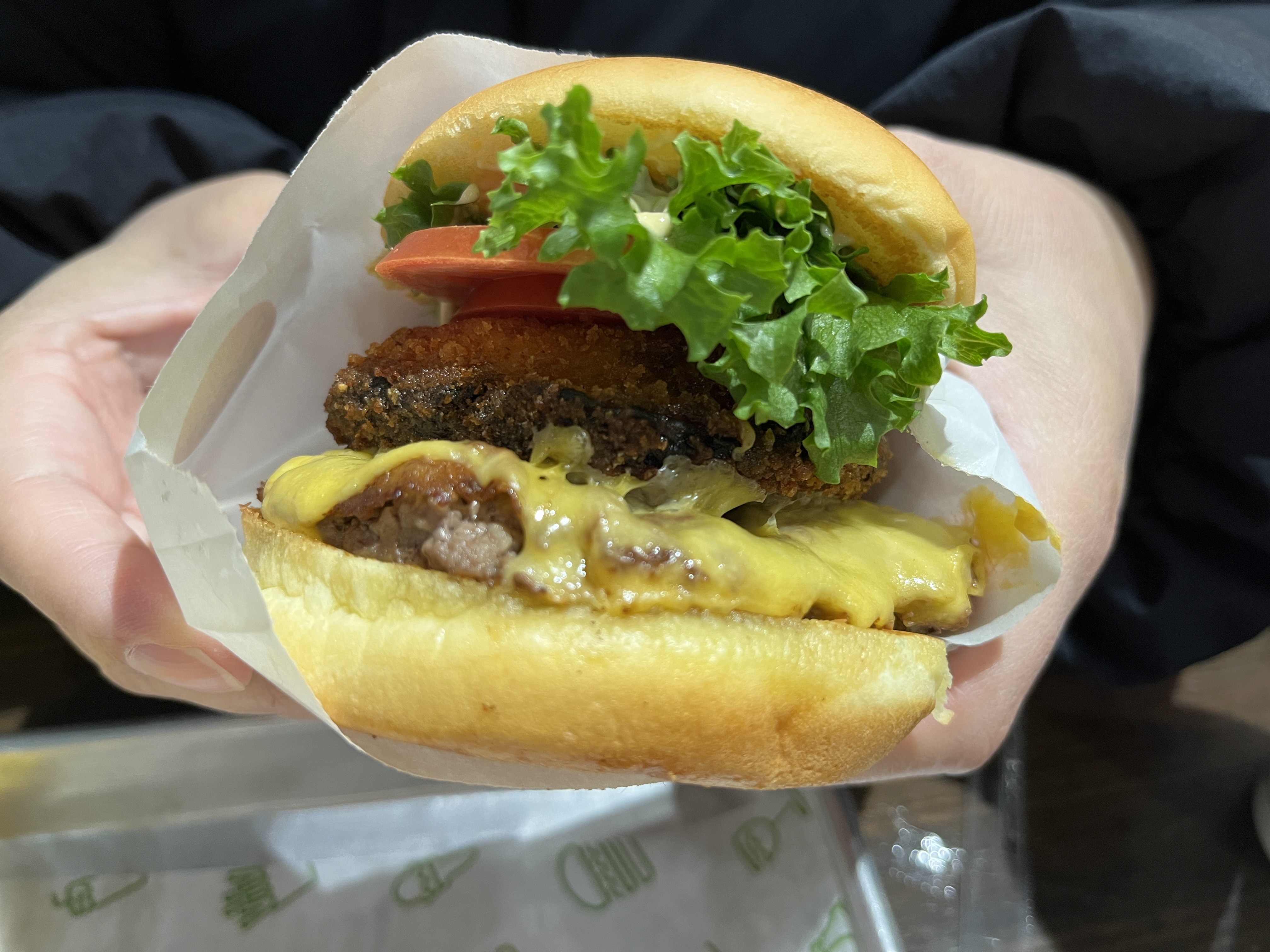 포토벨로 버섯 패티, 비프 패티와 함께 토마토, 양상추, 쉑소스가 토핑된 치즈버거라 한다.