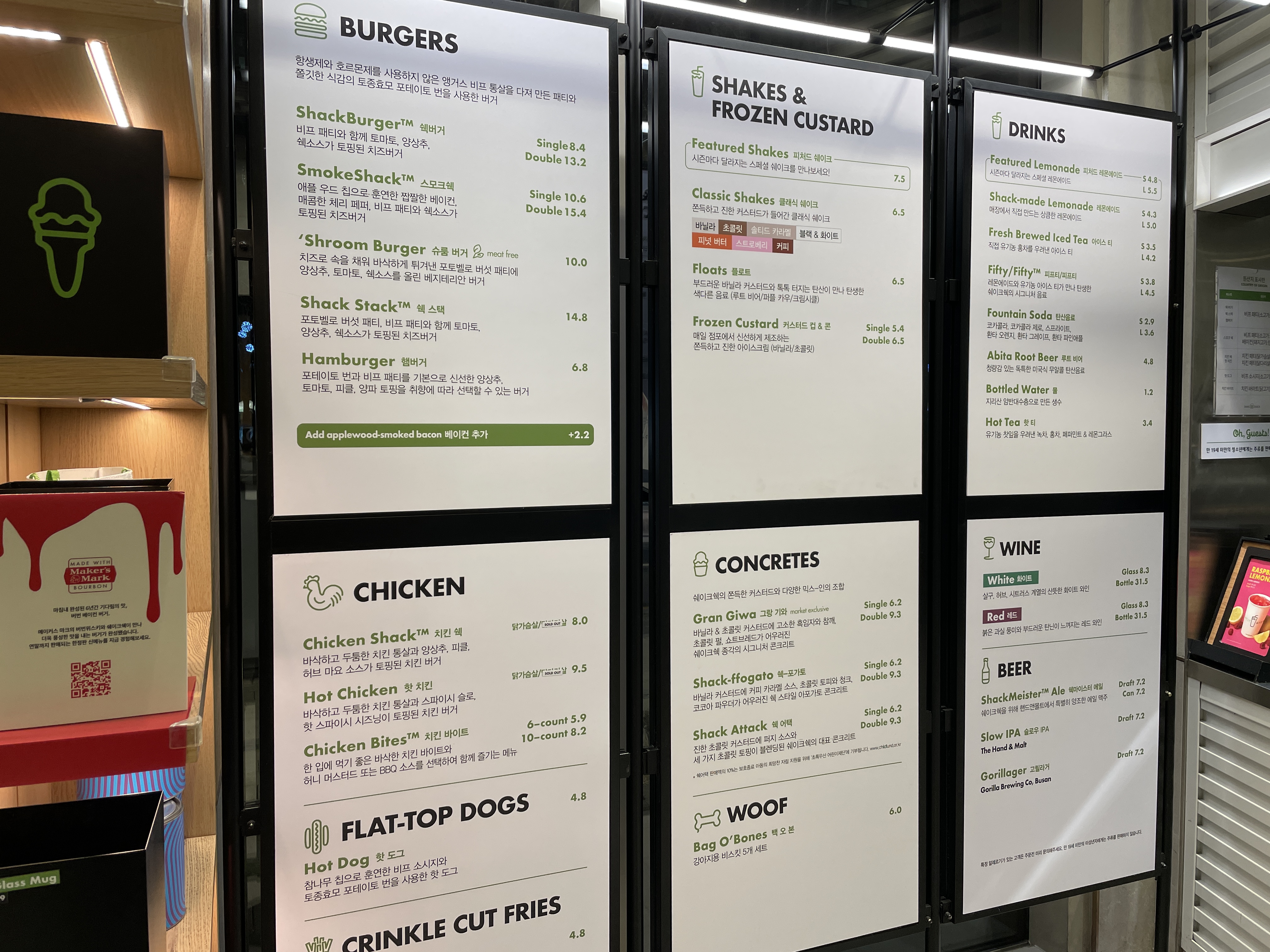 아이들은 다른 프랜차이즈의 버거를 먹을 때 오이 피클을 빼곤 하는데 쉐이크쉑 버거에서는 키오스크 주문시 오이피클이 없는 것이 디폴트다. 아이들은 대환영할 일.