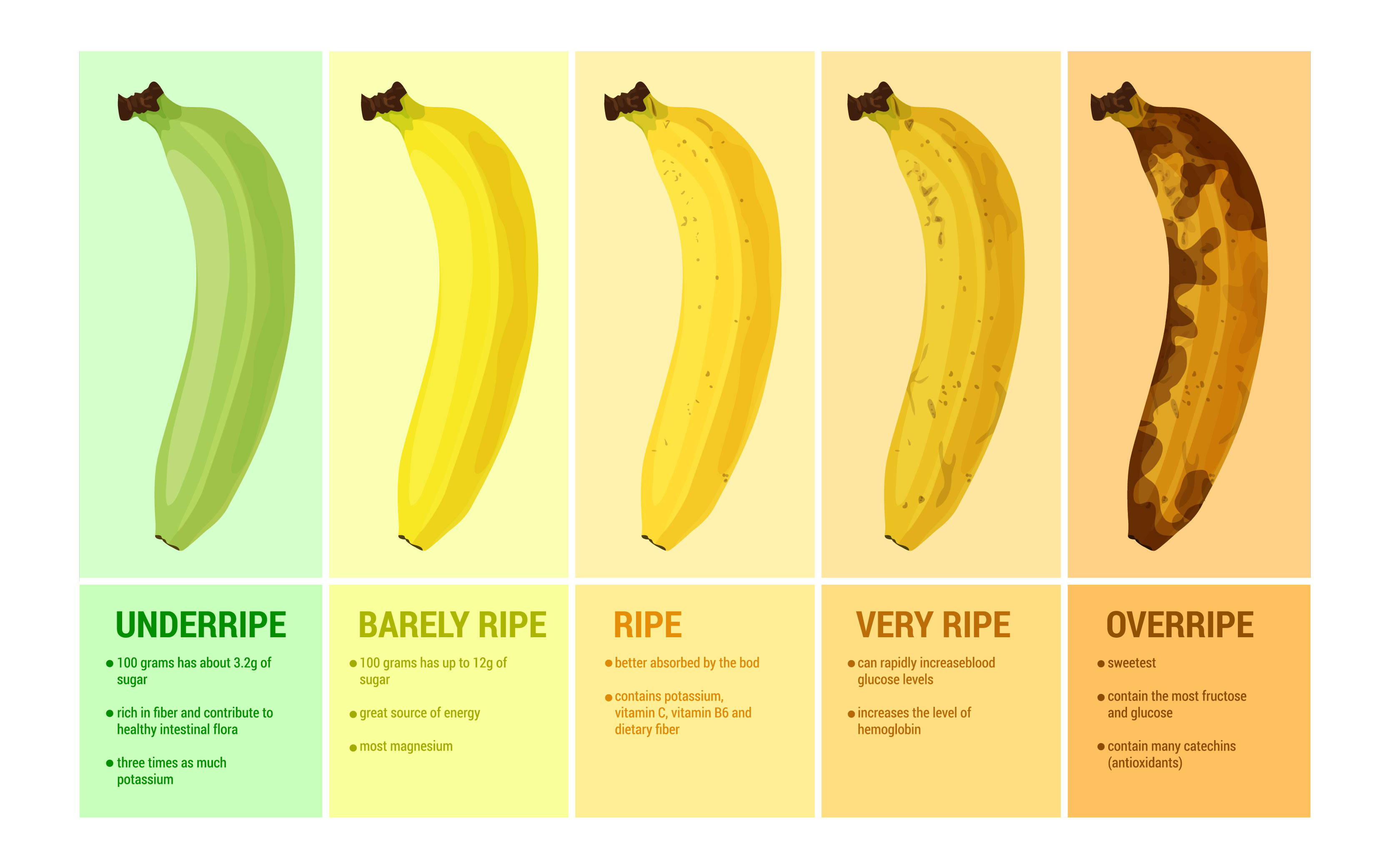 이 단계의 바나나는 단맛이 강해지고, 부드러워지며, 전분이 분해되어 간편하게 소화됩니다.