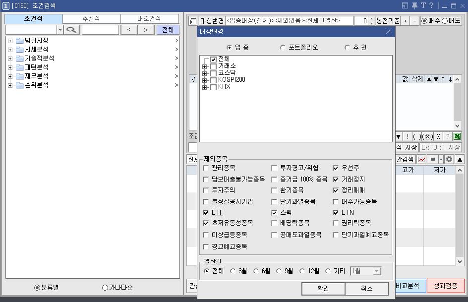 종목 조건 검색식을 통해 이런 저런 종목들을 찾아보며 내공을 쌓자.