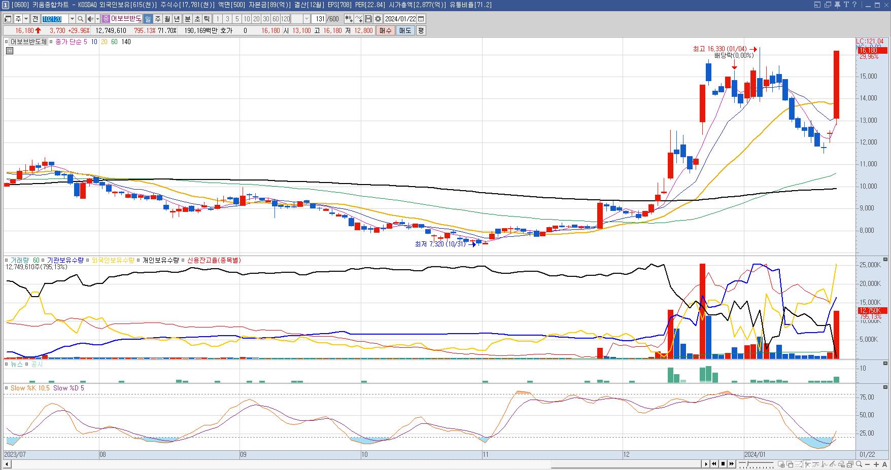 사실 오늘 이 검색식으로 나온 종목들 중 반도체 종목들이 많이 나왔고 상한가까지 상승한 종목들도 있었다.