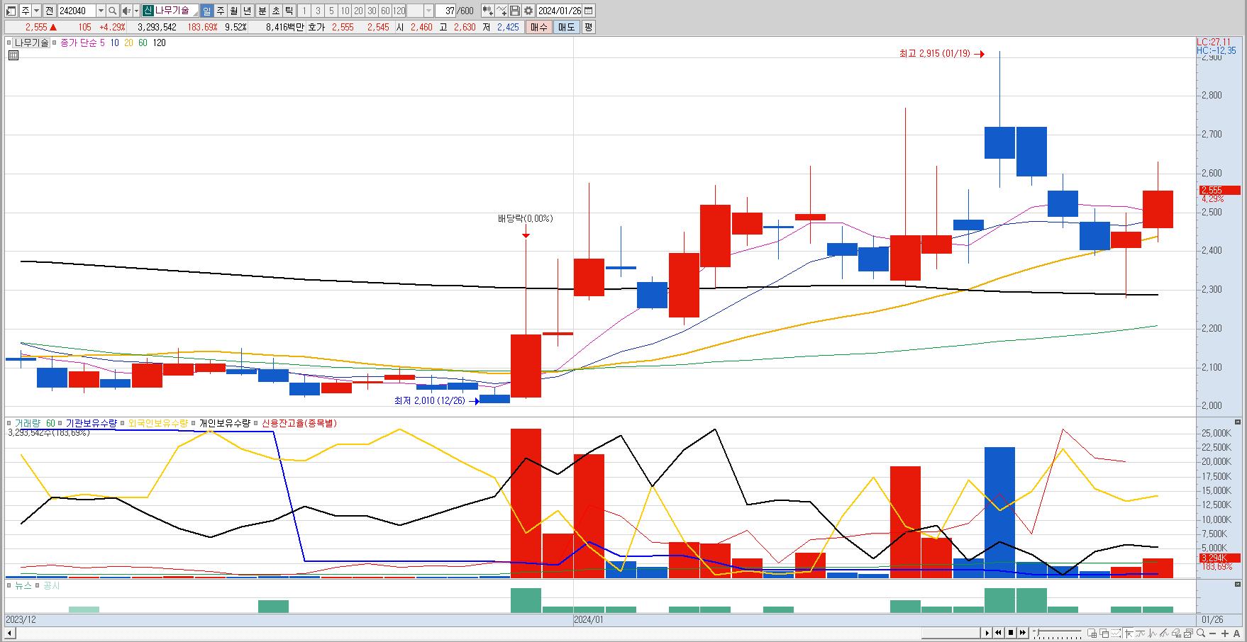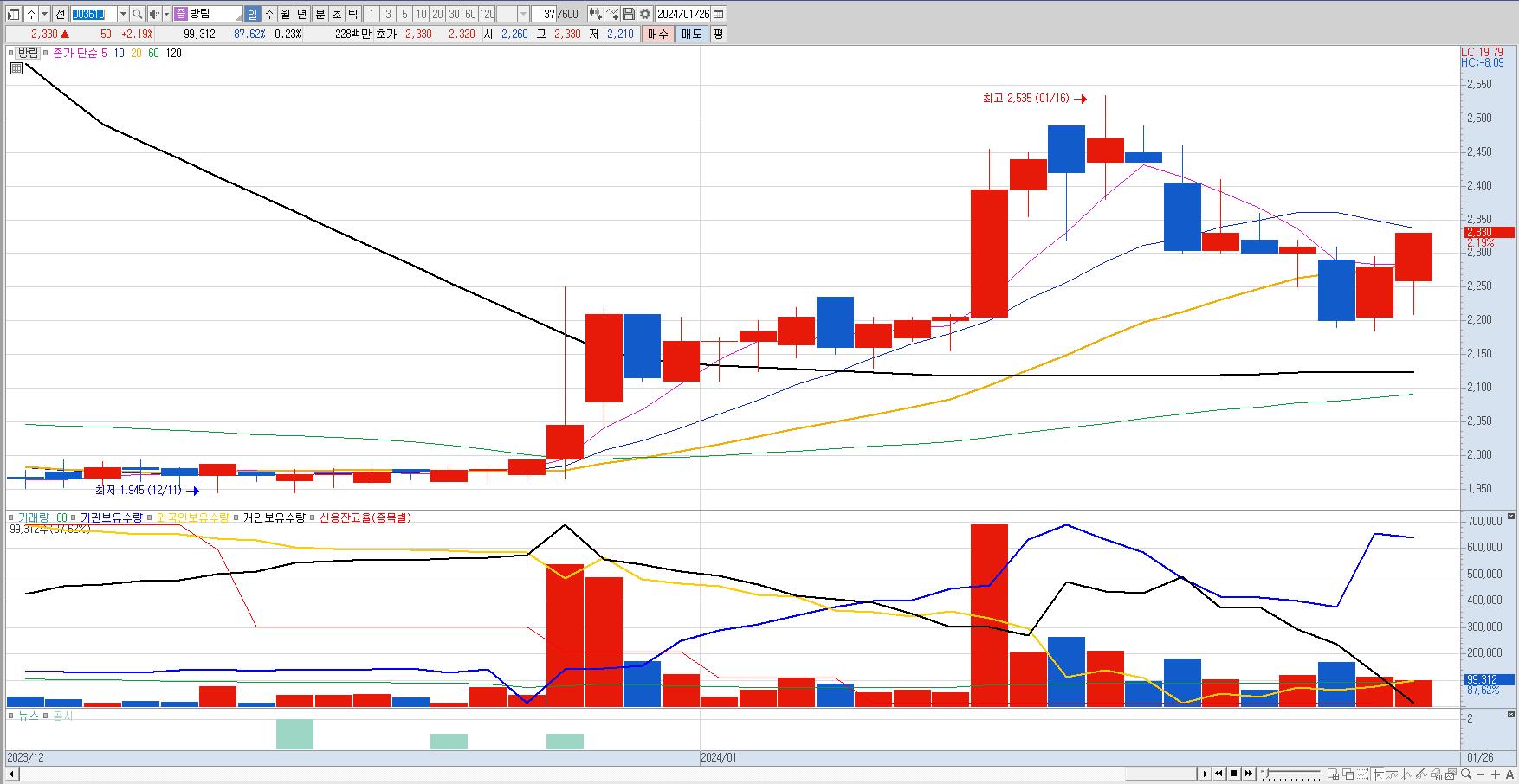 방림 일봉차트의 모습.