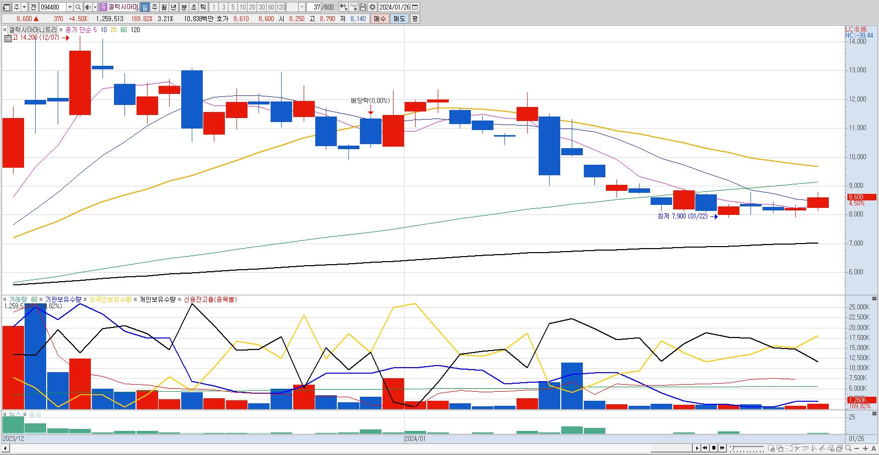 조건 검색식을 통해 나온 종목들의 일봉 차트를 살펴보자.