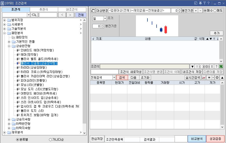 주식 상승반전형 캔들 패턴 조건검색식
