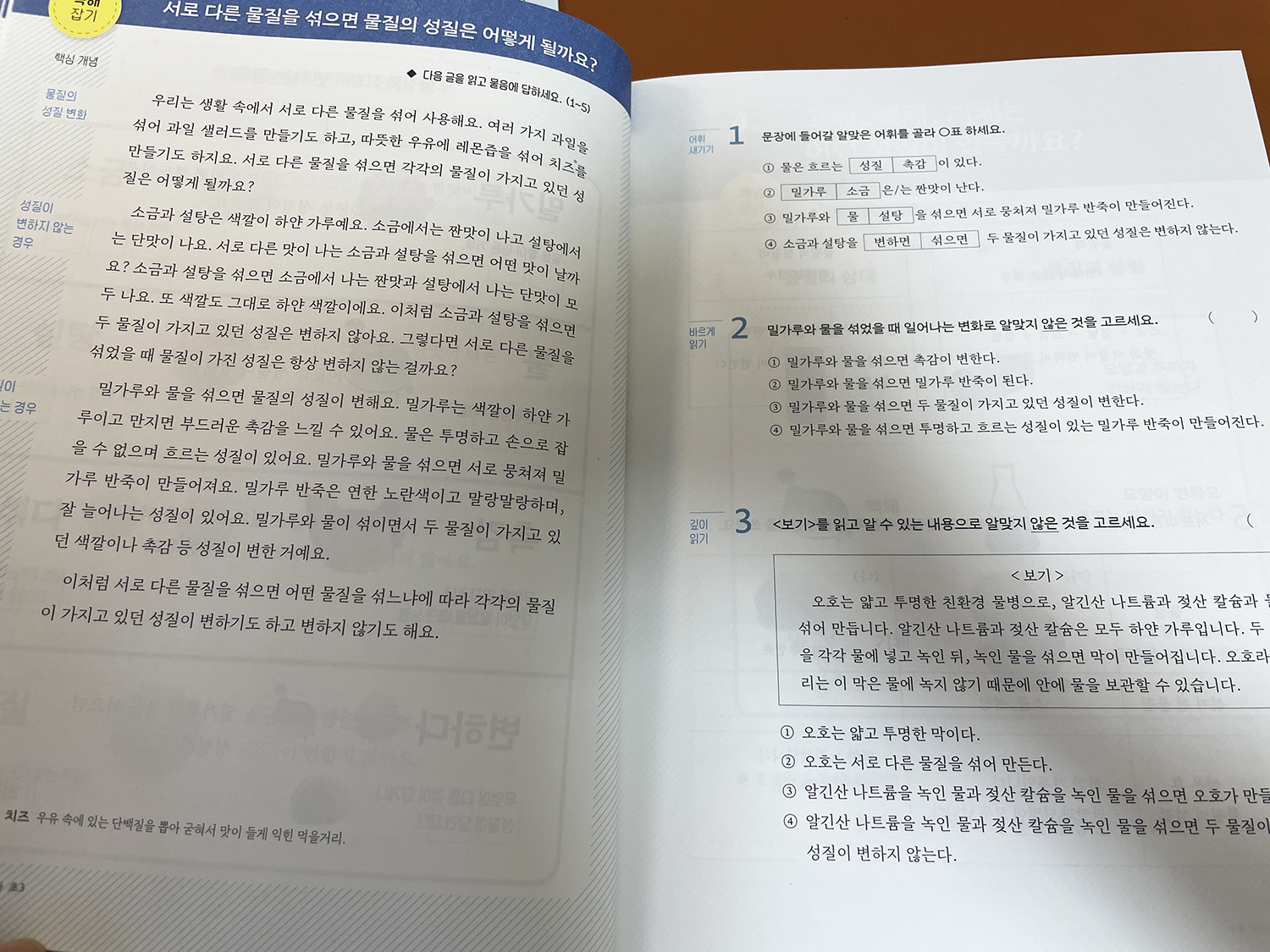 과학 교재 역시 이해하기 쉽도록 개념-어휘-독해 구성으로 이루어져 있습니다.