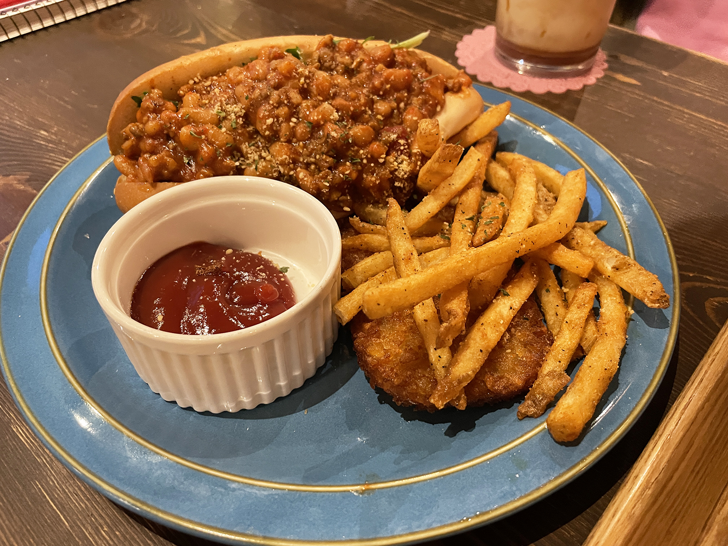 크림브륄레 수플레와 함께 운도도씨 최애 메뉴 칠리빈 핫도그의 모습입니다.