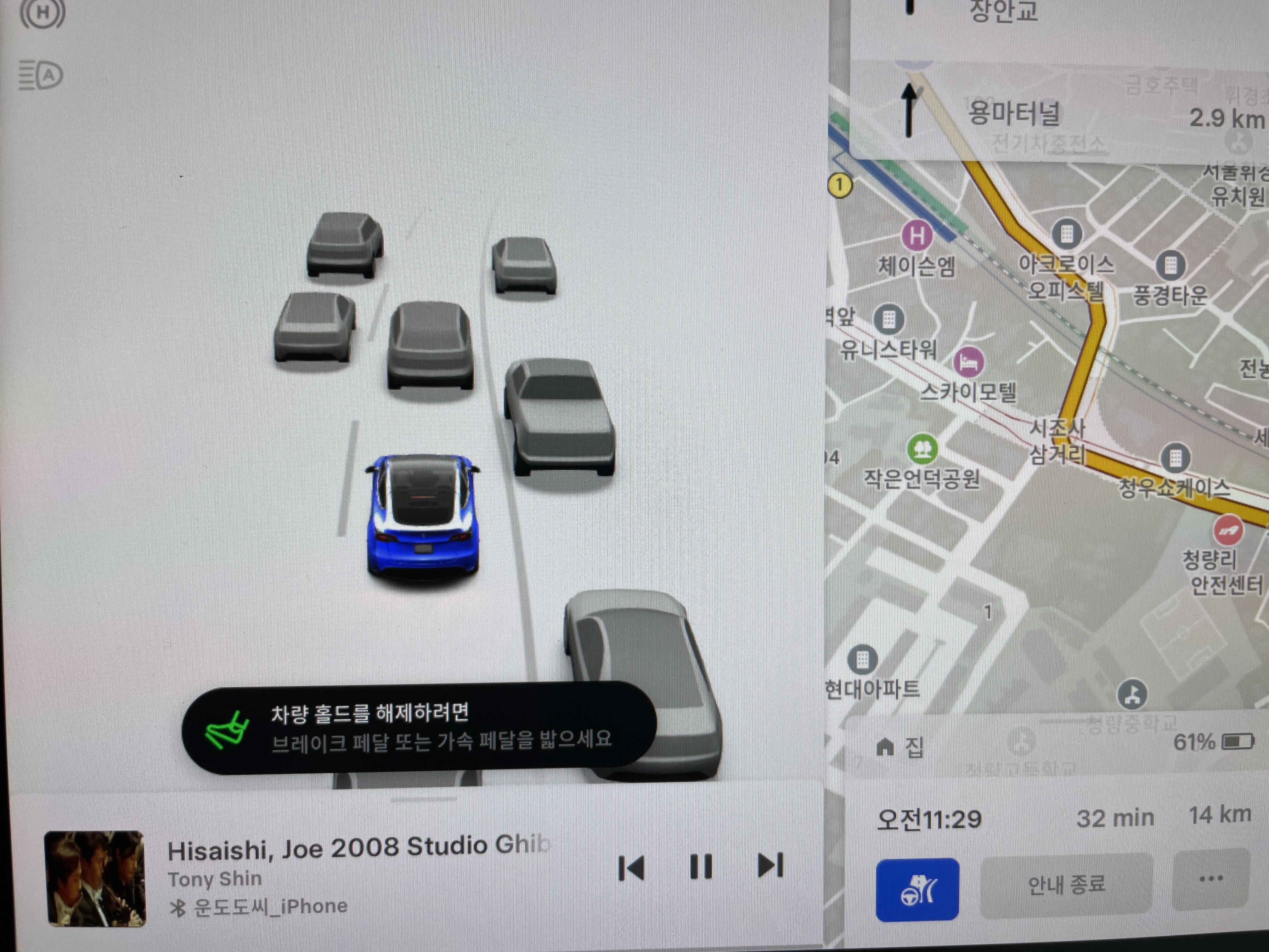 테슬라의 오토홀드 동작 및 해제 방법이 보다 효율적이라고 생각합니다.